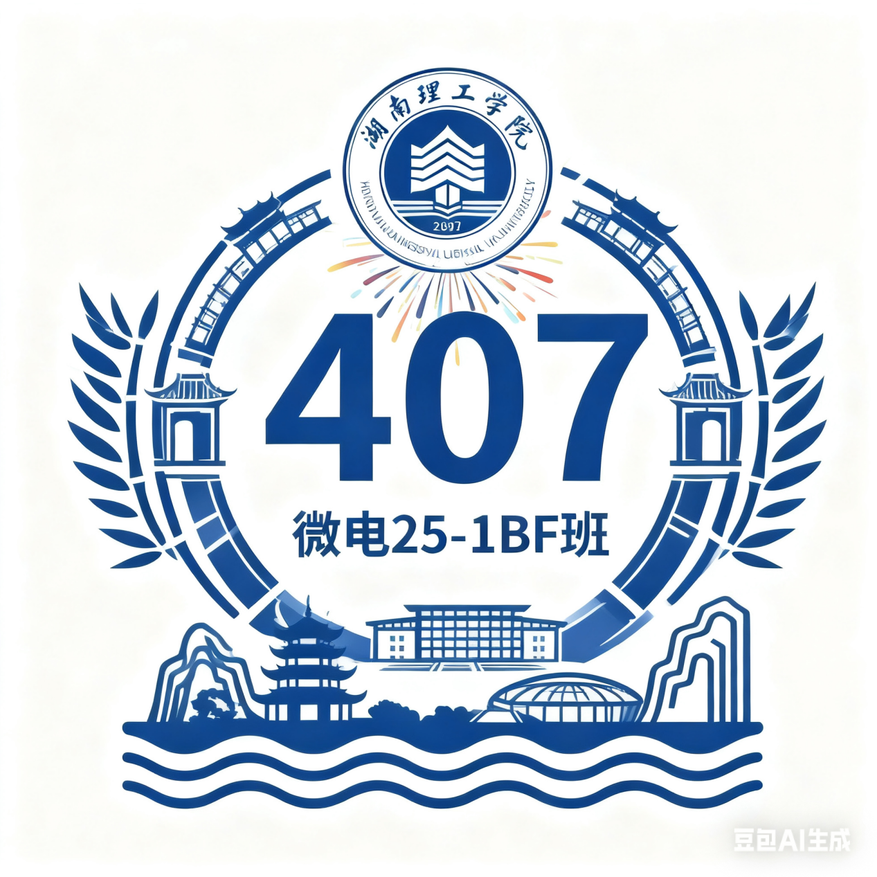 407的标识自带“工科生的专属浪漫”!蓝白配色清新简约,既贴合工科专业的科技感,又透着沉稳大气的气质。设计中巧妙融合校徽与湖湘建筑元素,将对学校的热爱与专业特色融入其中,简约却不简单,恰如寝室成员们踏实严谨、追求卓越的处事态度。