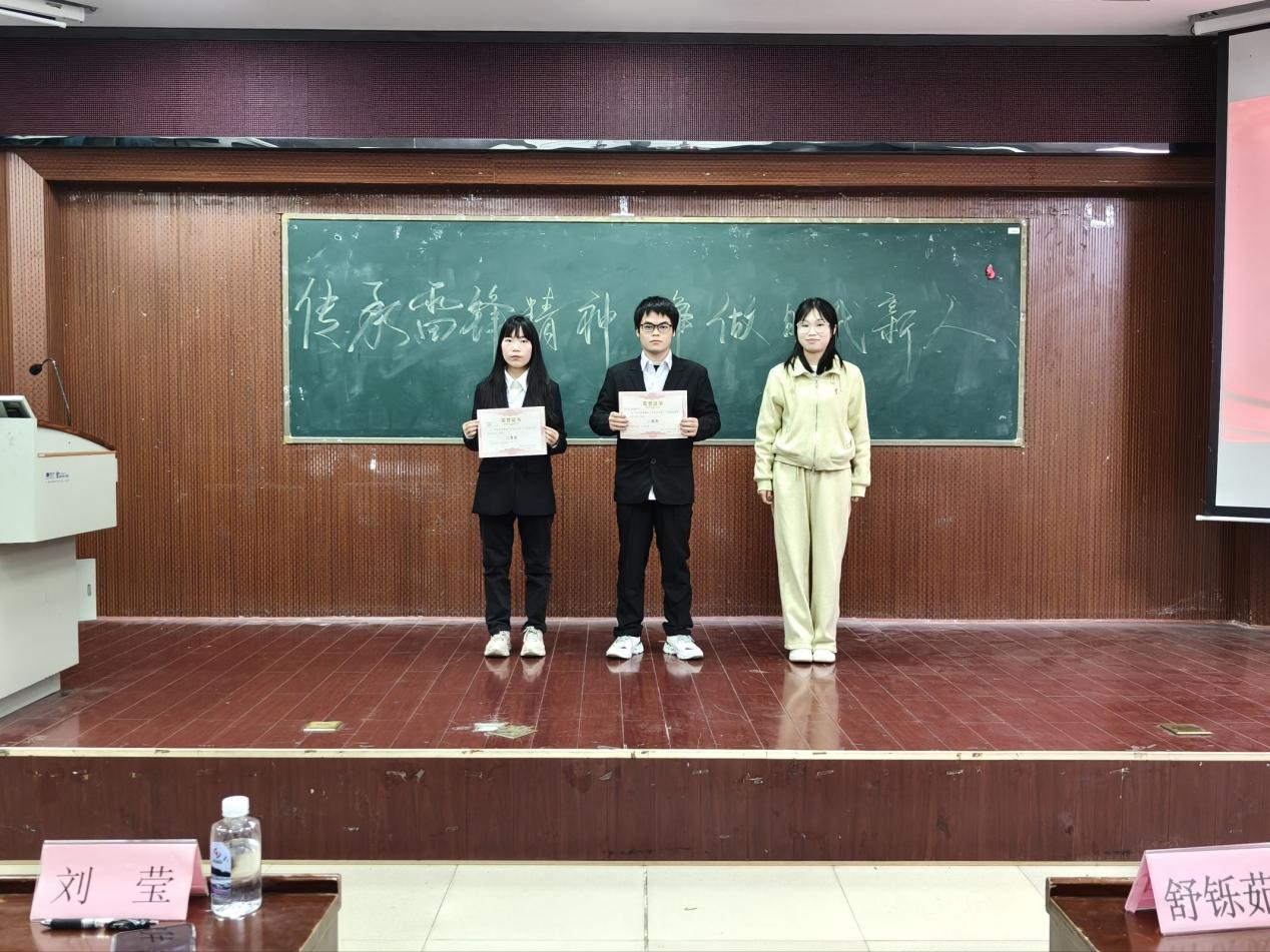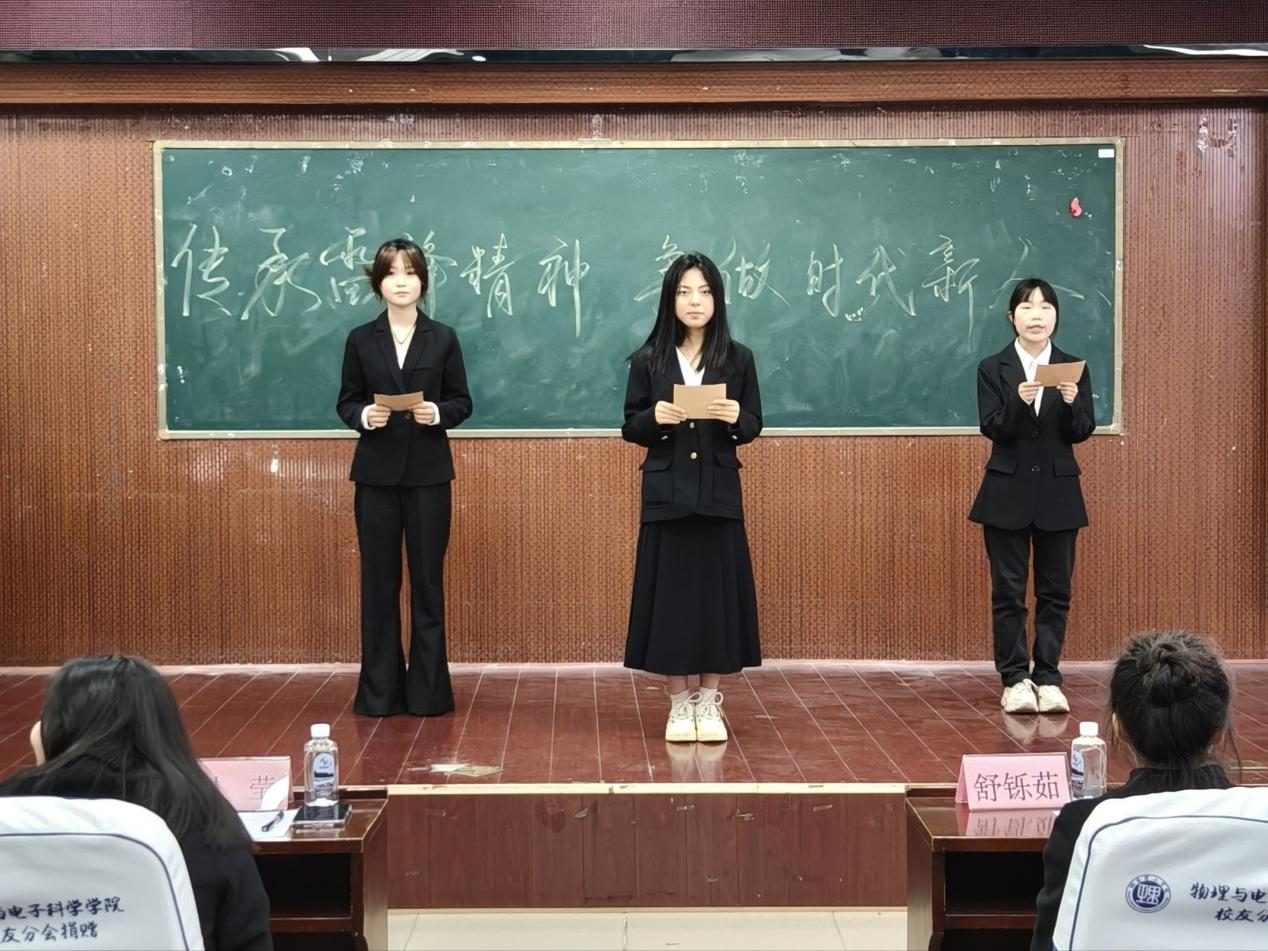 3月31日晚,物电学院于六栋学术报告厅开展“传承雷锋精神,争做时代新人”诵读比赛。研究生支部书记刘莹、研究生党员谢雨晴,本科生党员舒铄茹、欧阳兰受邀担任评委。本次比赛共设9组参赛队伍,由李汻平主持。