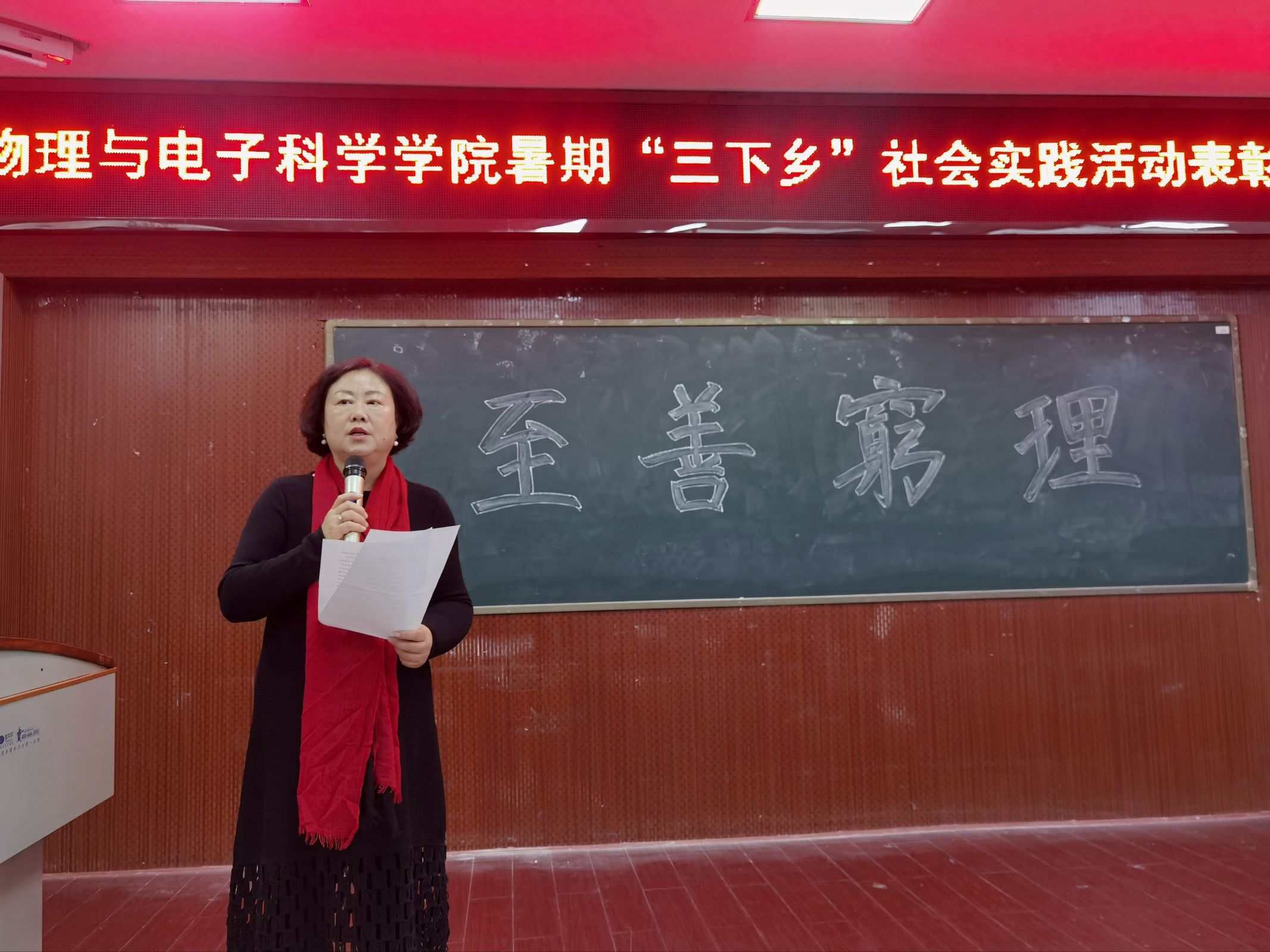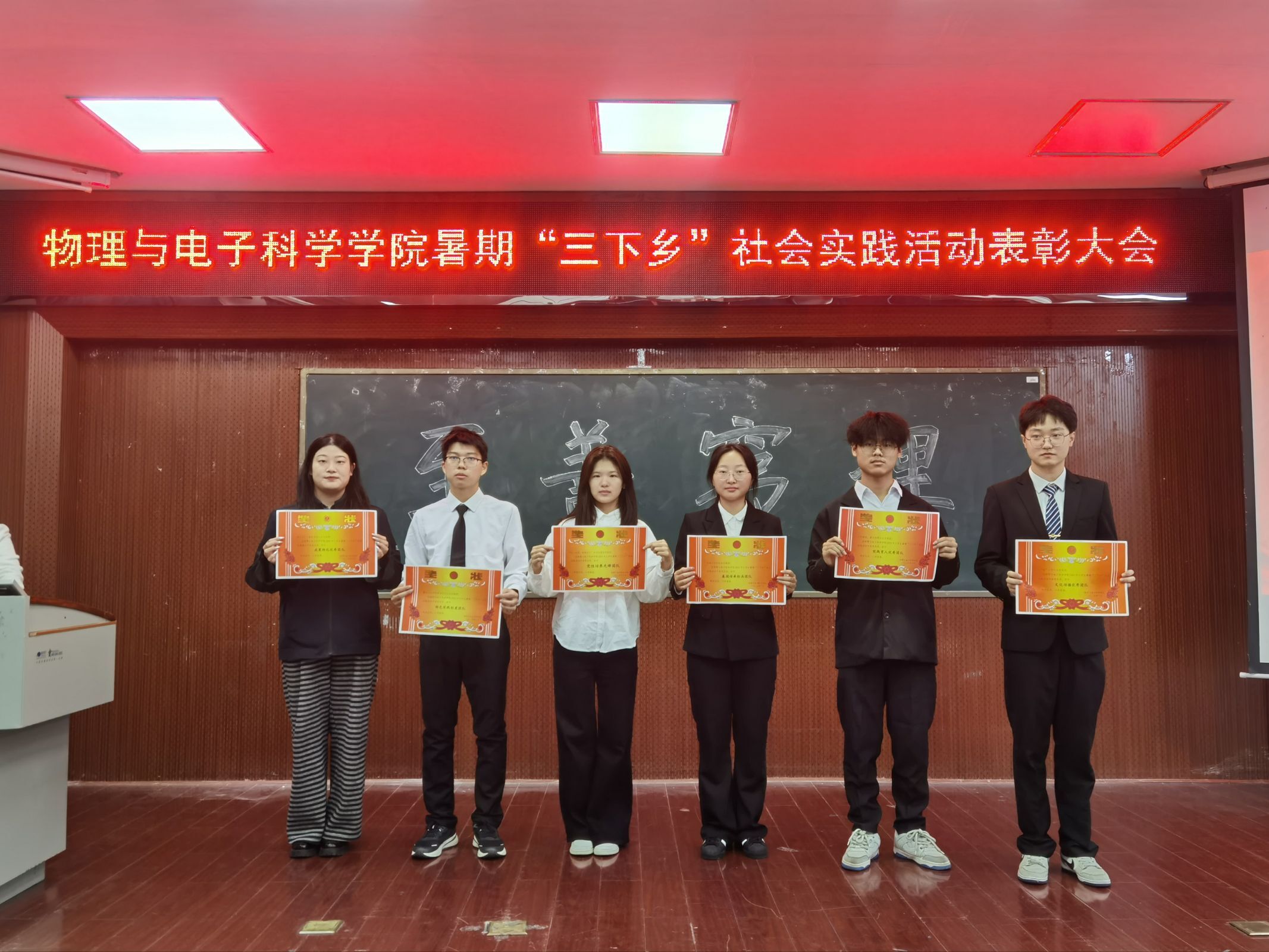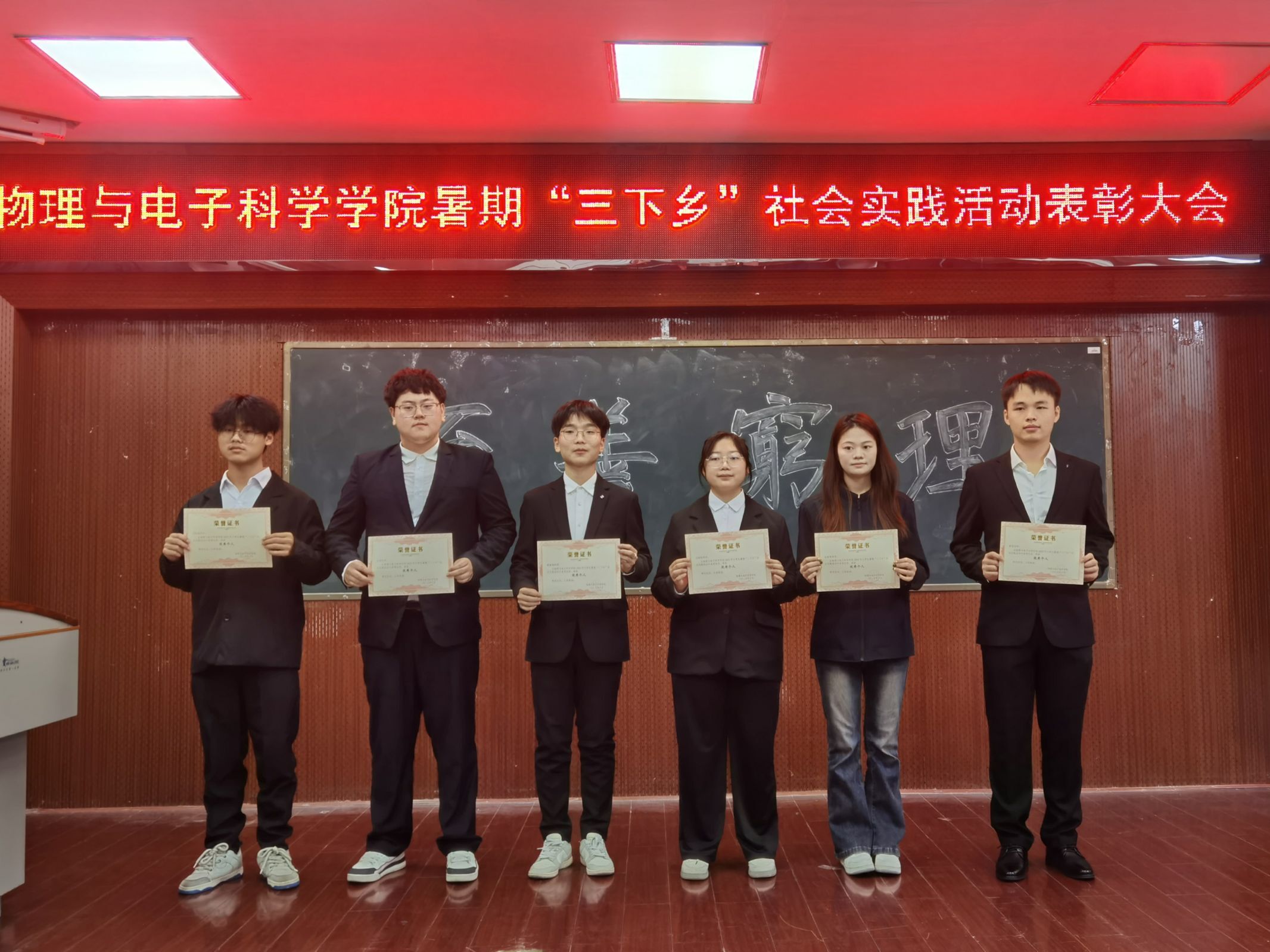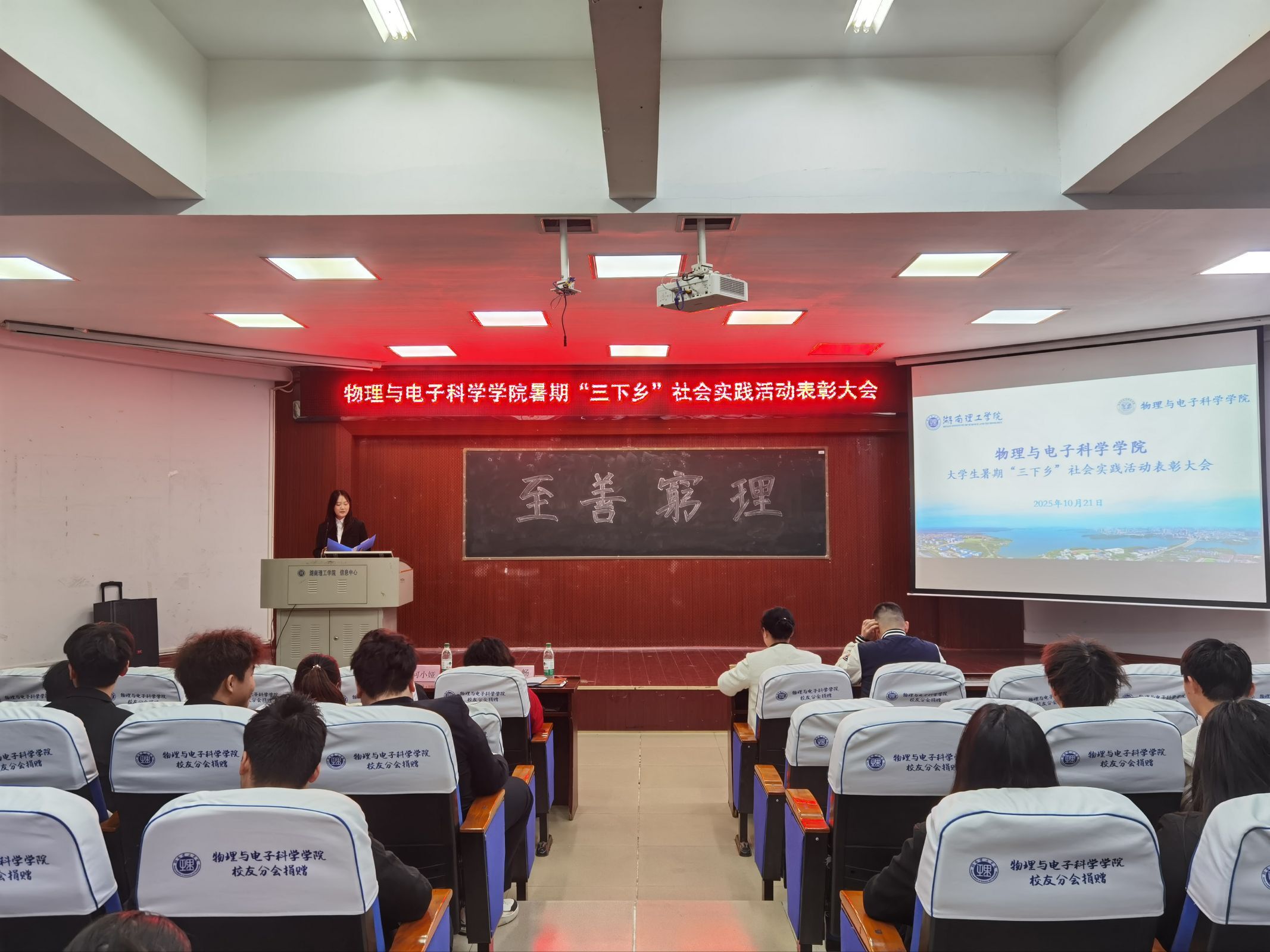 10月21日下午,物电学院在6栋报告厅举办2025年暑期“三下乡”社会实践活动表彰大会。学院党委书记周畅、副书记石红芳、学工办主任何小娅、团委书记姚世鹏及“三下乡”全体成员参加,甘晶月主持。