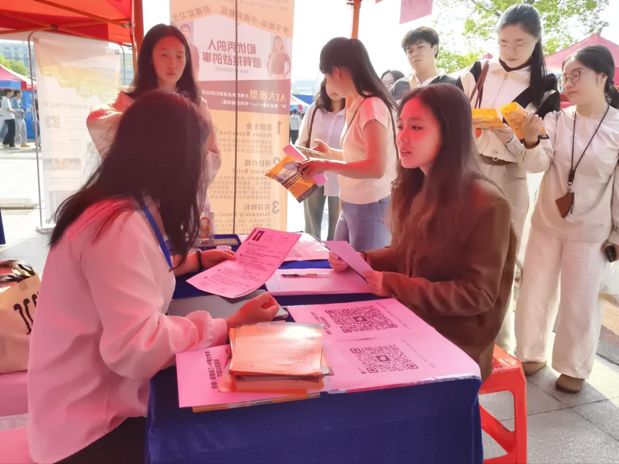 4月18日,“智汇潇湘 才聚湖南”2026年全省联动招聘活动(湘北片区)湖南理工大学专场在云梦广场举行。物理与电子科学学院党委委员周畅、副书记石红芳带领毕业班辅导员何小娅、就业专干李哲君,组织学院2026届毕业生积极参会,抢抓春季就业关键期。